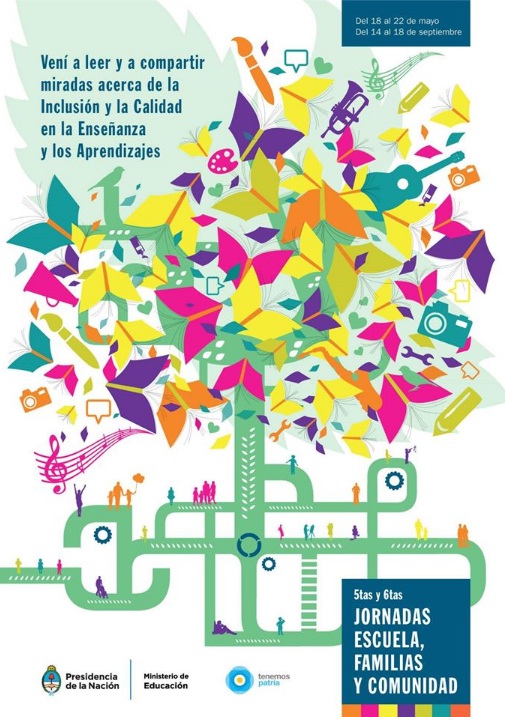 En 2015, la propuesta de las Jornadas Escuela, Familias y Comunidad es trabajar a partir de lecturas y de manera participativa en torno a las miradas de cada comunidad acerca de la inclusión y calidad en la enseñanza y los aprendizajes; y que las producciones resultantes de esa actividad creativa y expresiva, puedan ser compartidas entre escuelas de diferentes regiones de la Argentina.